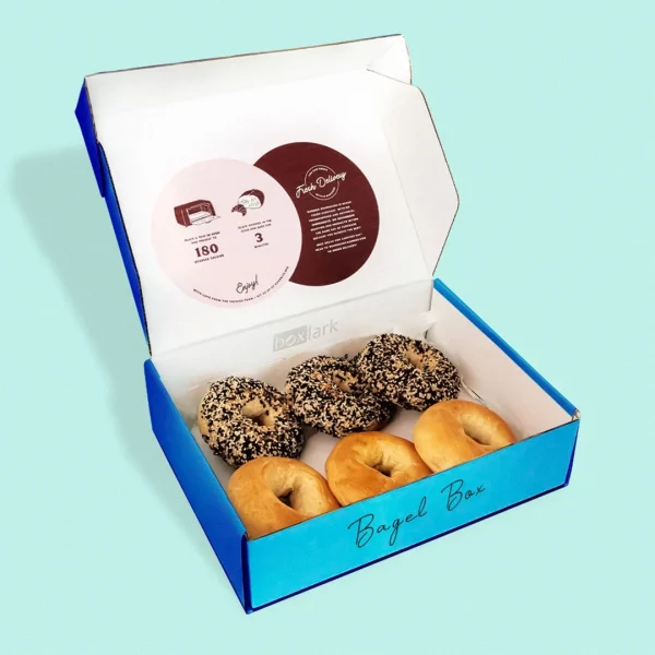 Bagel Boxes can transform the way you sell your bagels. Custom Boxes Land offers you food-grade and high-quality Bagel packaging options to serve bagels in a classic and premium style. We assure that our boxes keep your fresh bagels as fresh as possible for a long time and make them irresistible through packaging.